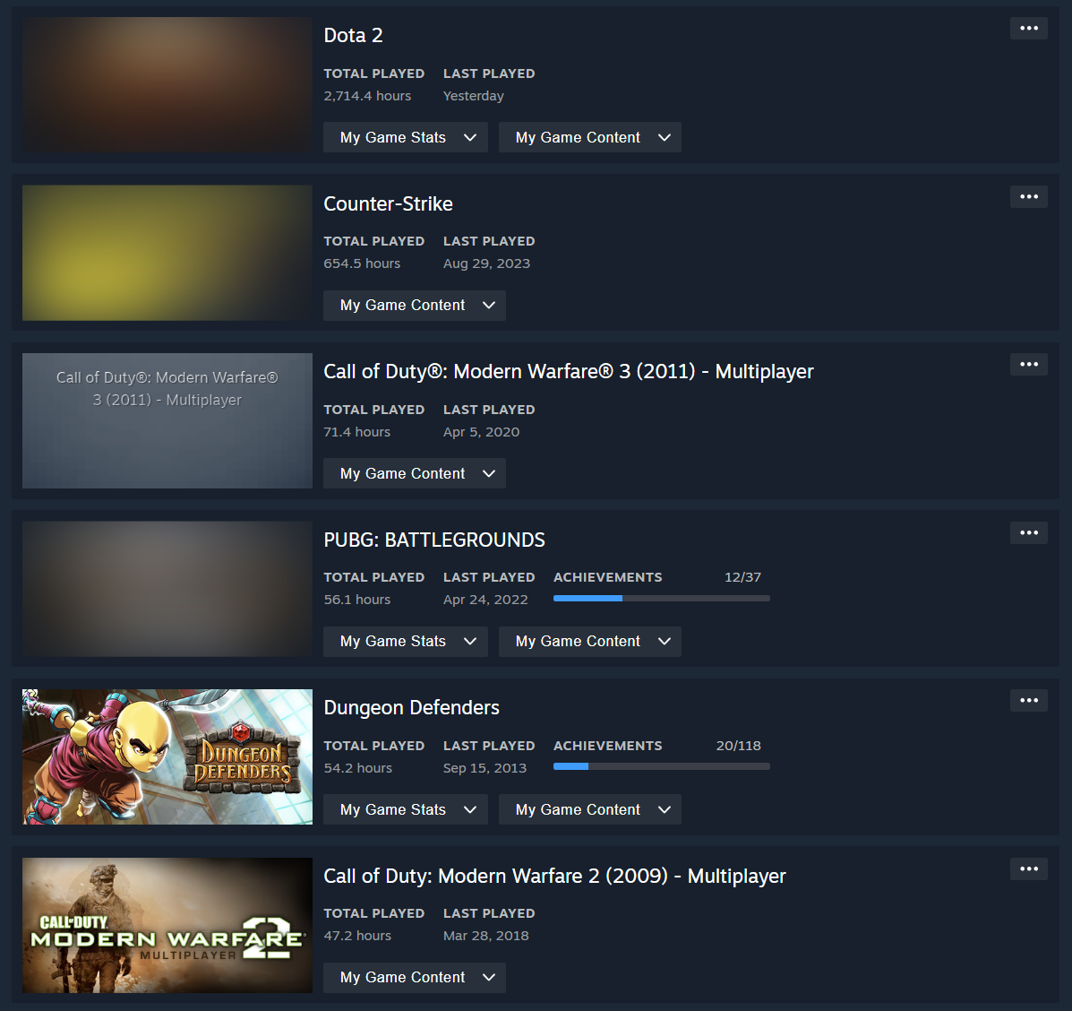 Până să termin liceul 🎓 și să intru în domeniul foto 📸, am fost mare gamer 🎮 și o bună parte din timp o pierdeam la calculator 💻 pe MU Online, CS 1.6, DotA 2, Call of Duty și, de vreo 4 ani, am adăugat Fortnite la colecție 🕹️. Aveți dovada mai jos cu orele totale jucate ⏱️.