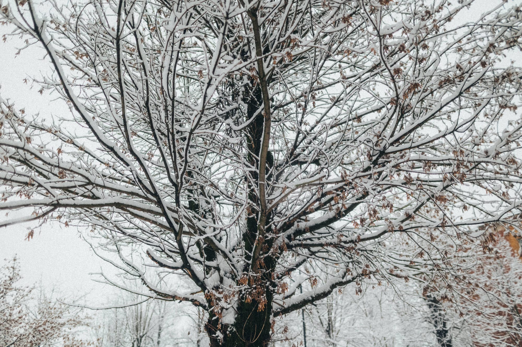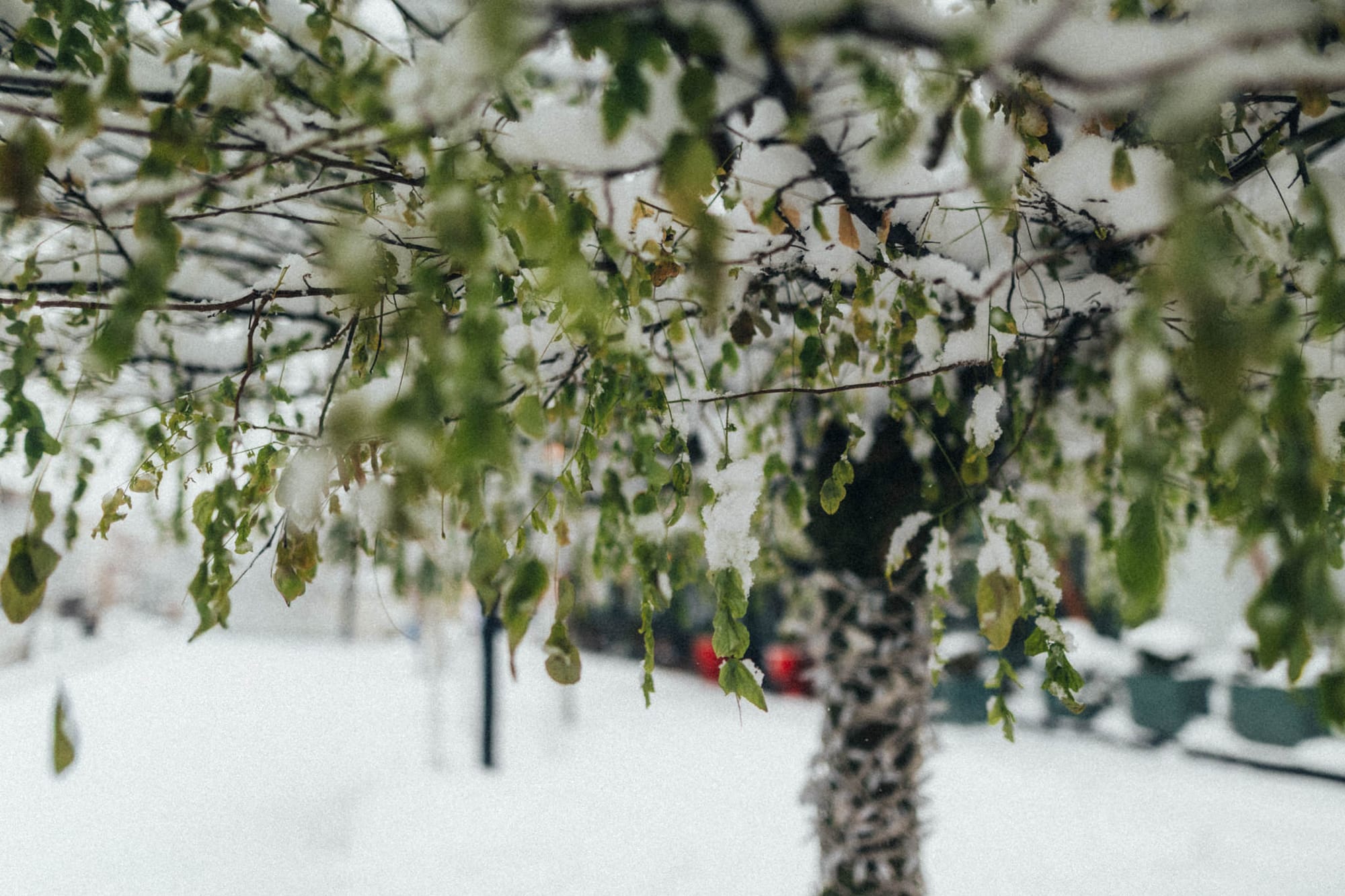 Și pe copaci i-a luat zăpada prin surprindere 🌲, bănuiesc 🤔.